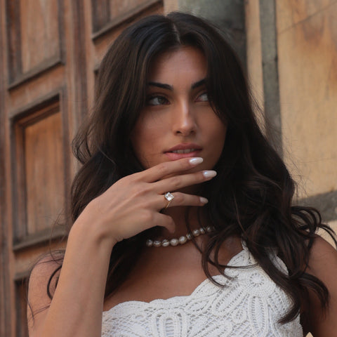Aynur Jahan proudly unveils its first engagement ring, showcasing a breathtaking princess-cut lab-grown diamond. This exquisite creation embodies luxury and elegance, combining impeccable craftsmanship with a modern, sustainable approach. This ring is a timeless symbol of love and sophistication, designed for those seeking something extraordinary.